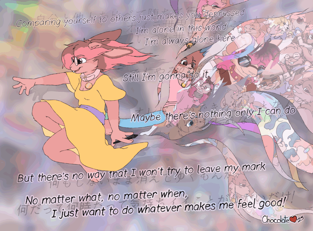 Given how well things have been going for me lately, including and especially with regards to my art, I believe I discovered the show at just the right time. It encouraged me to actively consider my attitude towards various aspects of what I do, why I do it, and how it reflects upon myself, as well as how that's changed over the years.