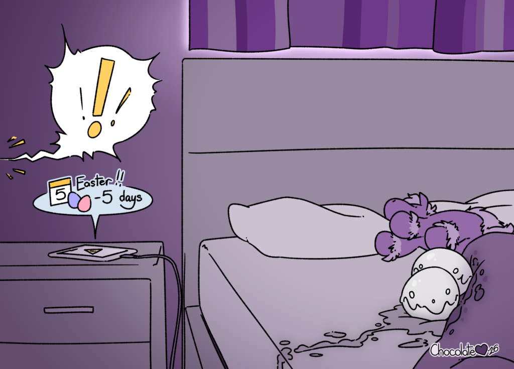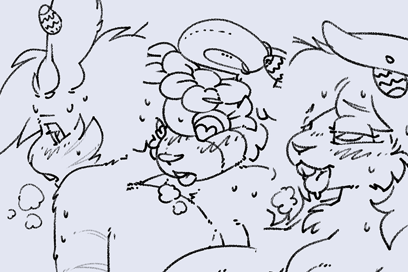 I started out with this teaser pinup that stands on its own as a bit of visual storytelling, and it ran double duty as an ad for folks to know I was taking Easter commissions! The idea was that I was behind on my quota, and needed help - which wasn't entirely wrong!