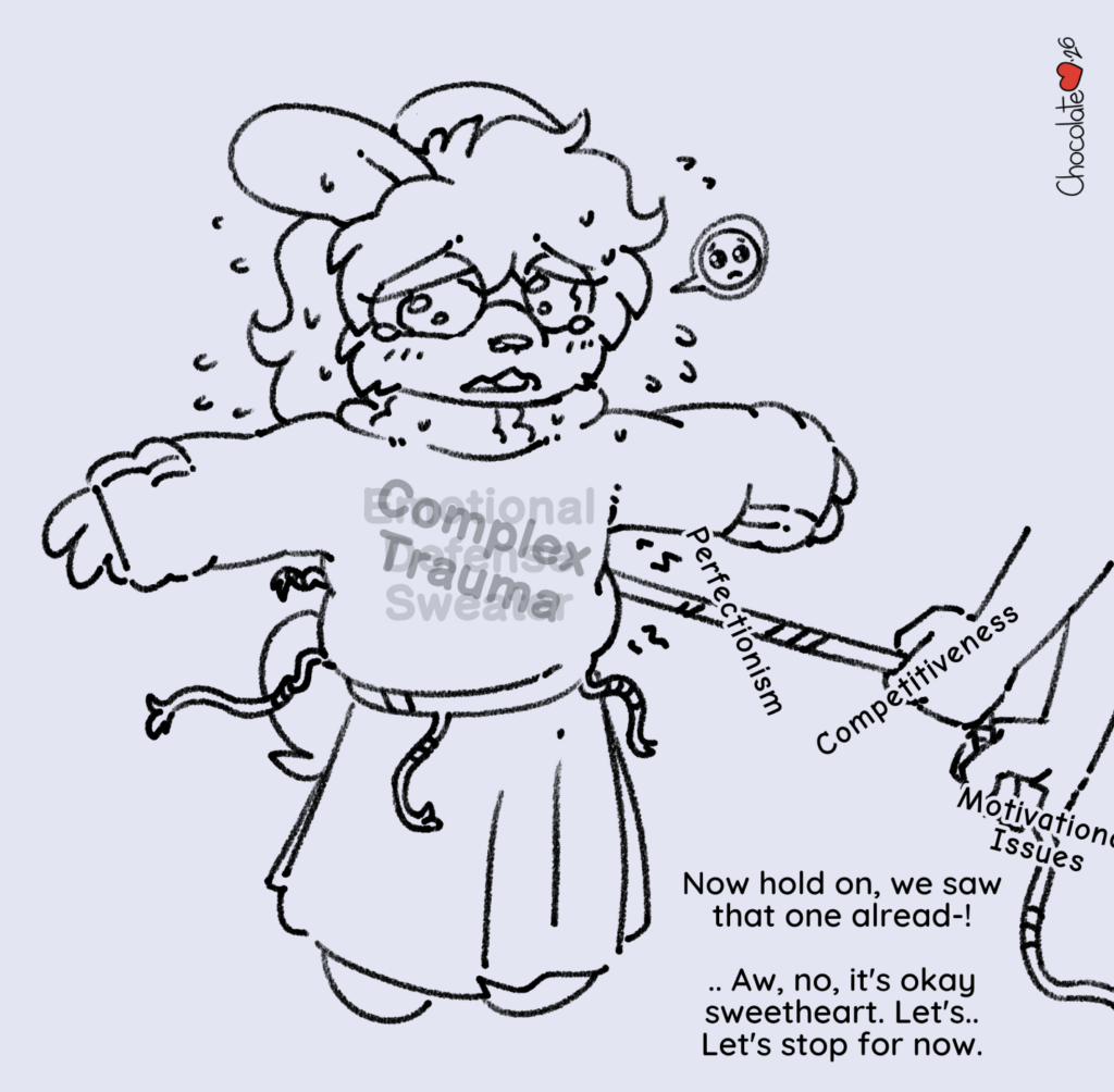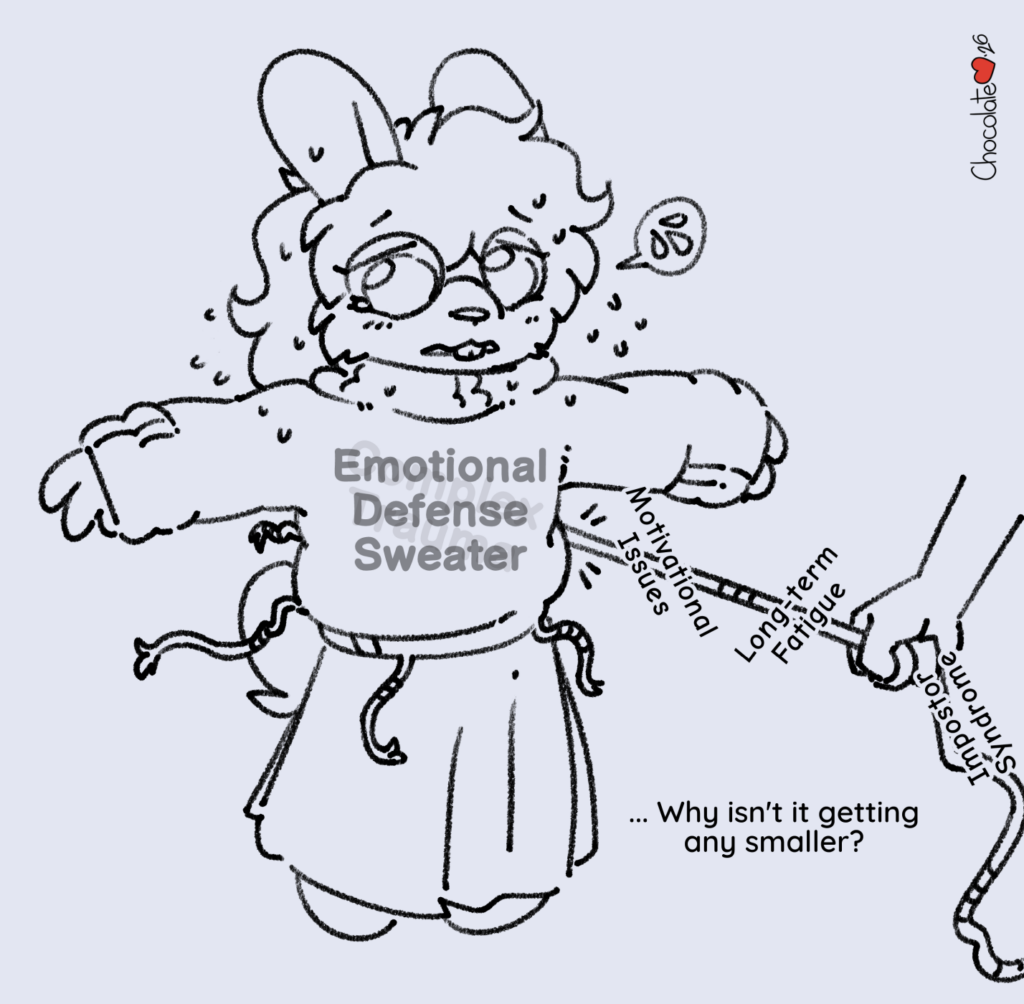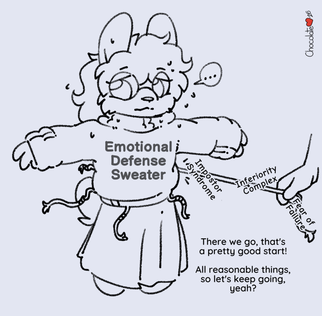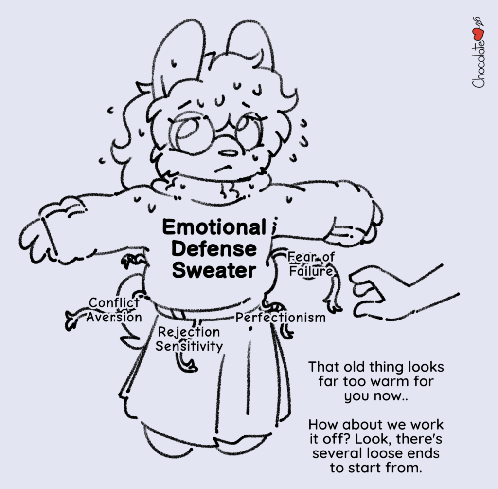 I saw a post recently about how we outgrow our emotional coping mechanisms, likening it to a thick sweater we put on to keep ourselves warm (safe) when we were otherwise cold (less so) - but later, if and when things are hopefully warmer and safer, the sweater becomes a burden.